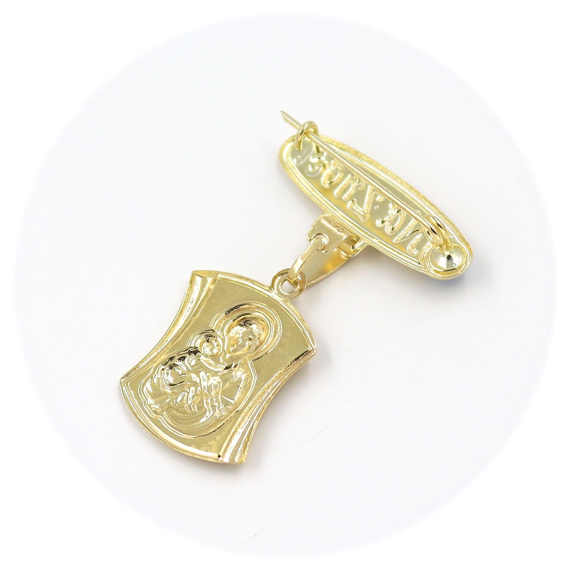Χρυσή παραμάνα "Να Ζήσει" 9 καρατίων με μάτι σε μπλε χρώμα και δίχρωμο φυλαχτό Παναγίτσα
