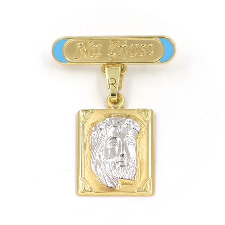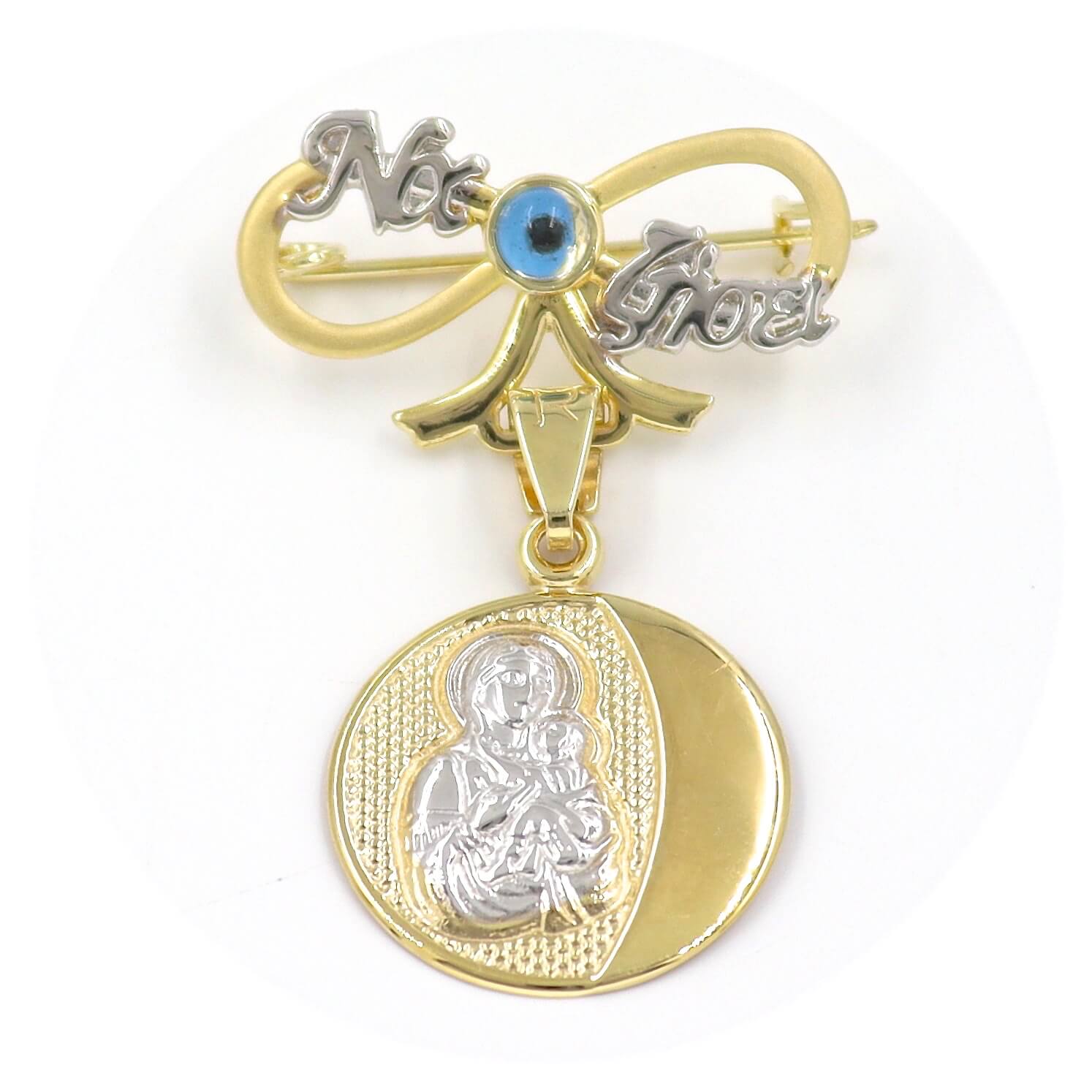 Χρυσή παραμάνα "Να Ζήσει" 9 καρατίων με μάτι σε μπλε χρώμα και δίχρωμο φυλαχτό Παναγίτσα παραμανες παραμανα γουρια ματακι