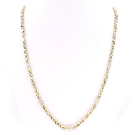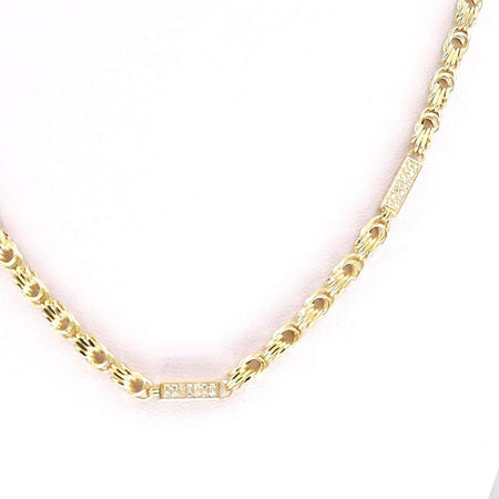 Χρυσό περιδέραιο 14 καρατίων με δίχρωμες καδένες, κρικάκια κουρμέτ και ένθετα διακοσμημένα από λευκές πέτρες ζιργκόν της Dalloz