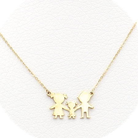 Χρυσό κολιέ 9 καρατίων σε μοτίφ οικογένεια με μαμά, μπαμπά και αγοράκι και κοριτσάκι
