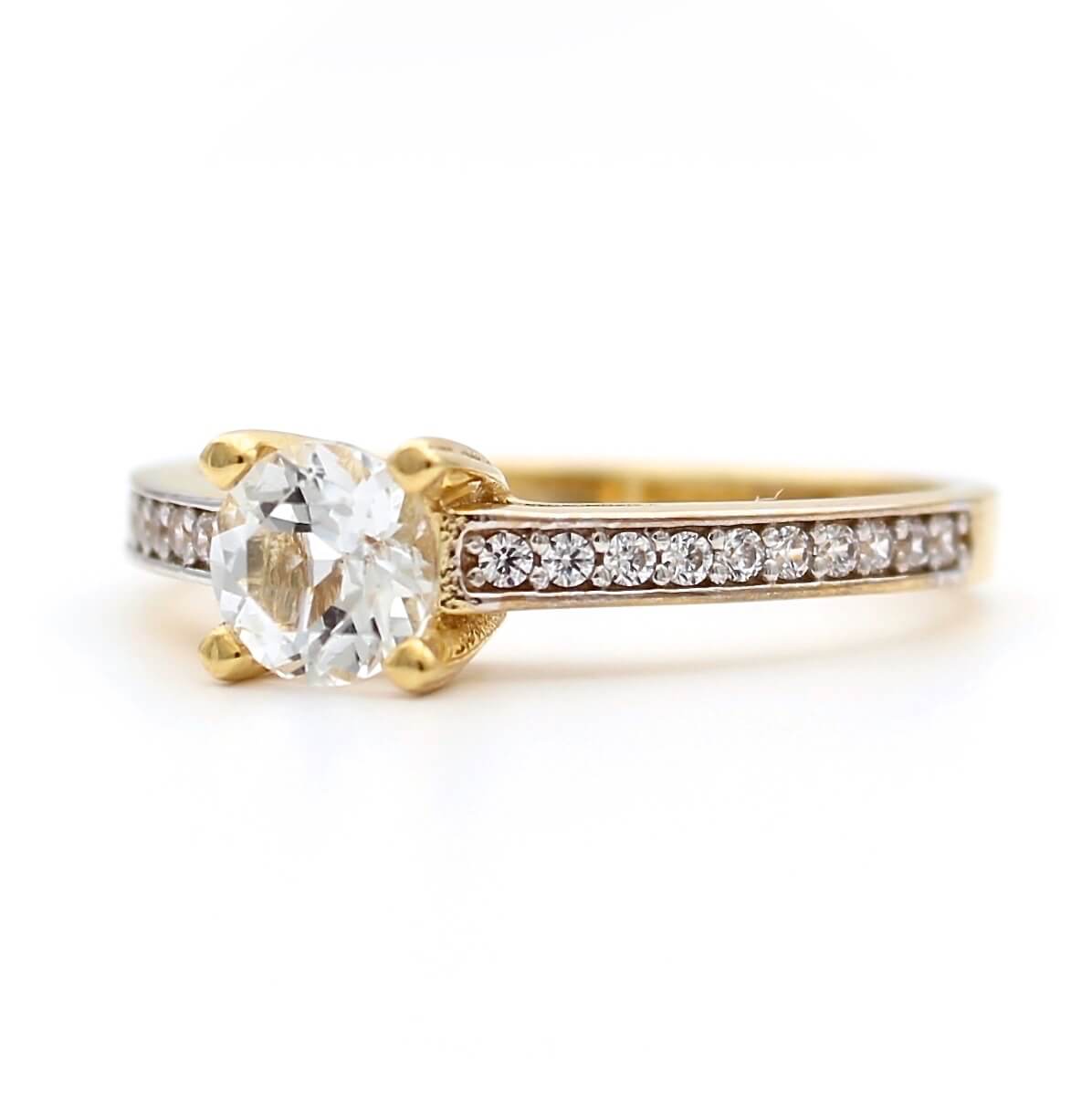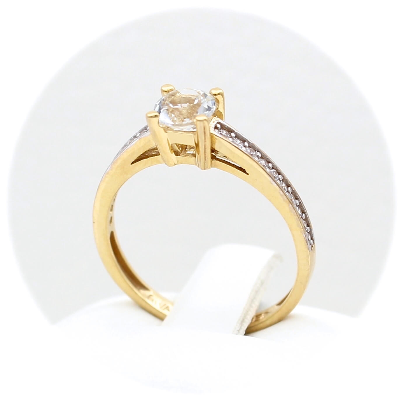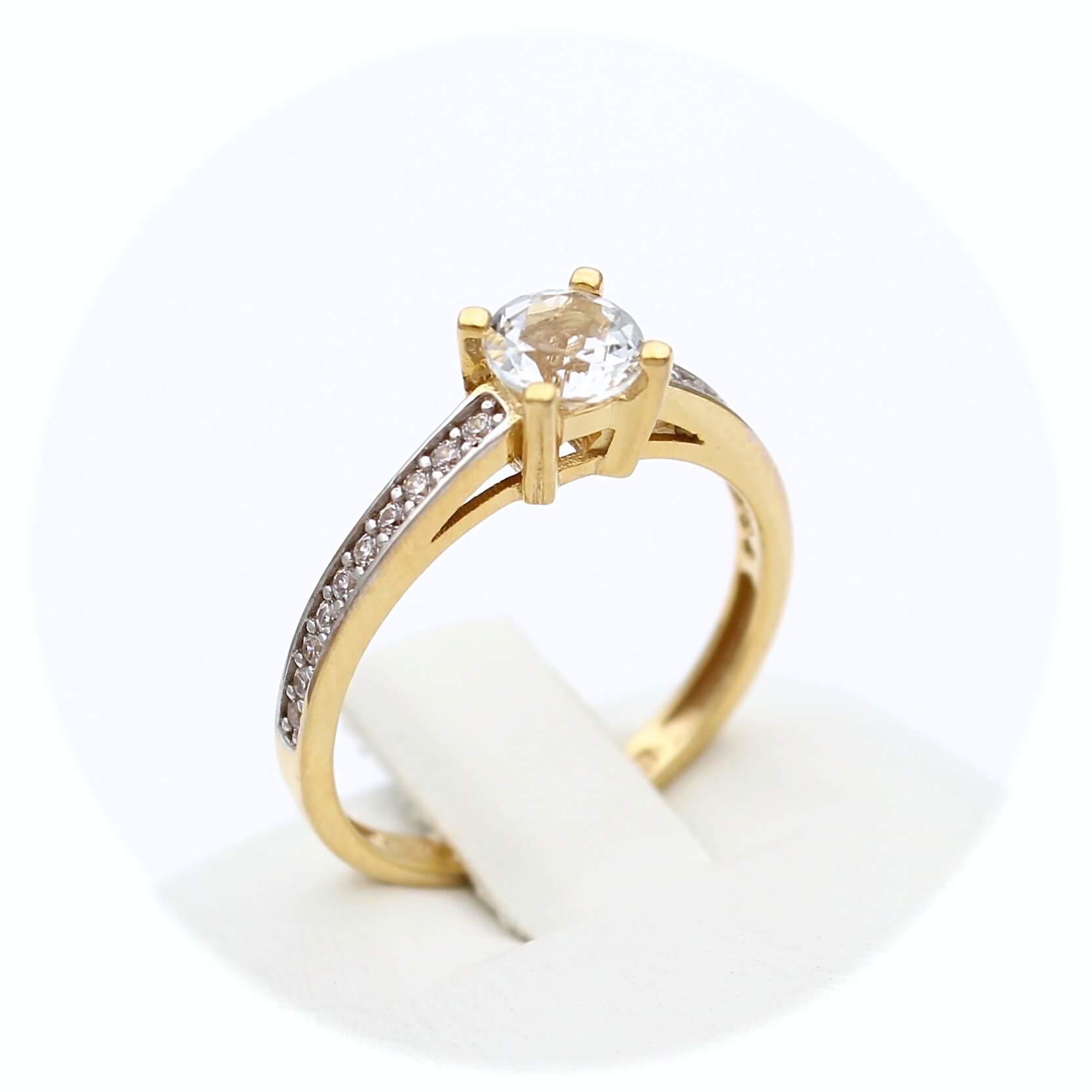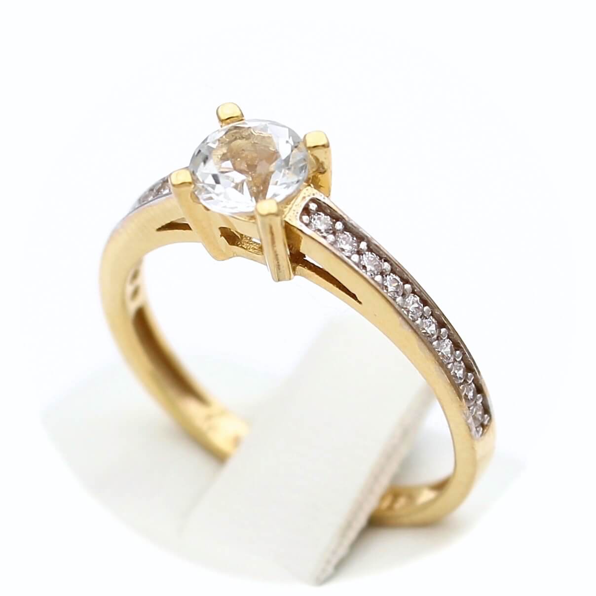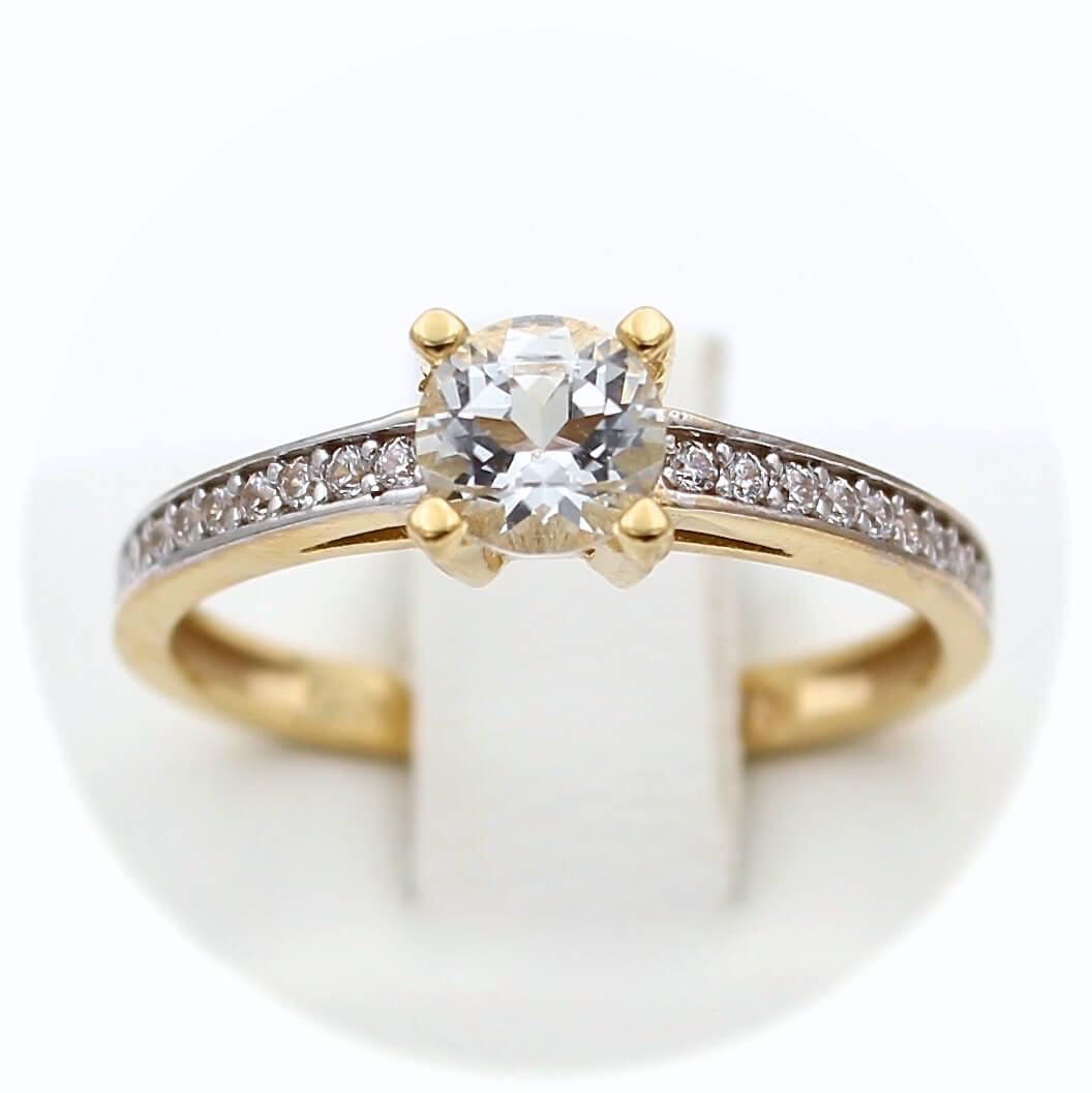 Χρυσό μονόπετρο δαχτυλίδι 14 καρατίων με ορυκτή κεντρική πέτρα της Swarovski και λευκές πέτρες ζιργκόν