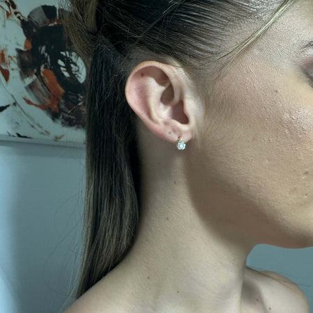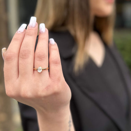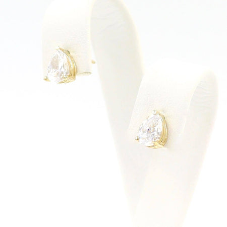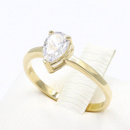 Χρυσό σετ γάμου 14 καρατίων, διακοσμημένος από λευκές πέτρες ζιργκόν σε σχήμα σταγόνας.