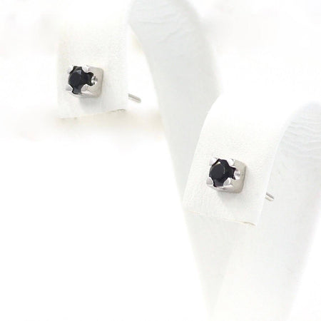 Λευκόχρυσα σκουλαρίκια 14 καρατίων με μαύρες πέτρες ζιργκόν