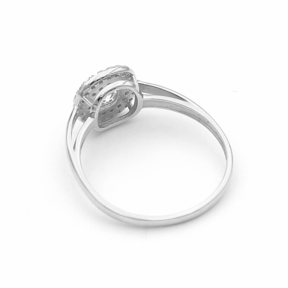 Το δαχτυλίδι είναι διακοσμημένο με λευκές πέτρες ζιργκόν