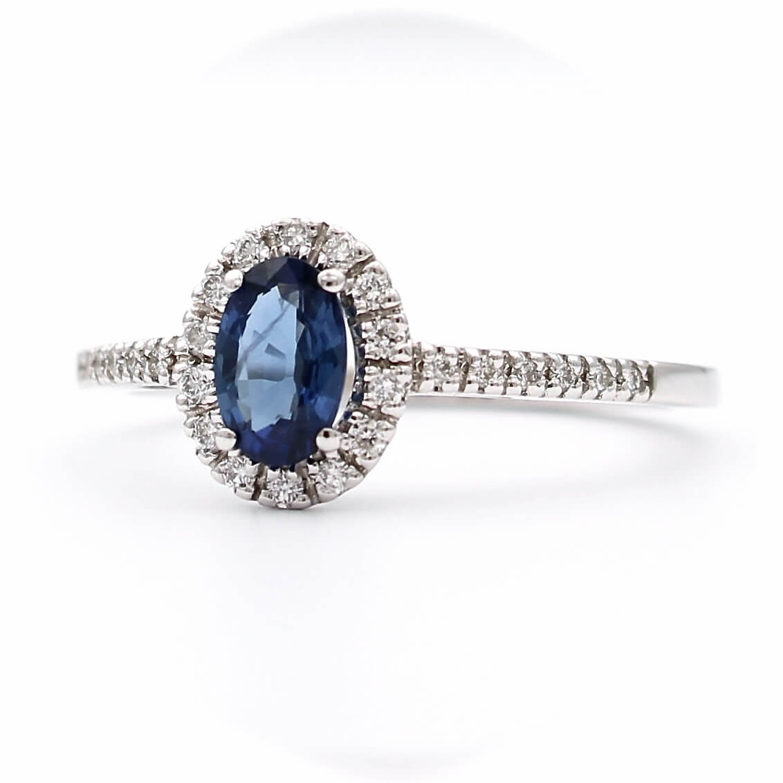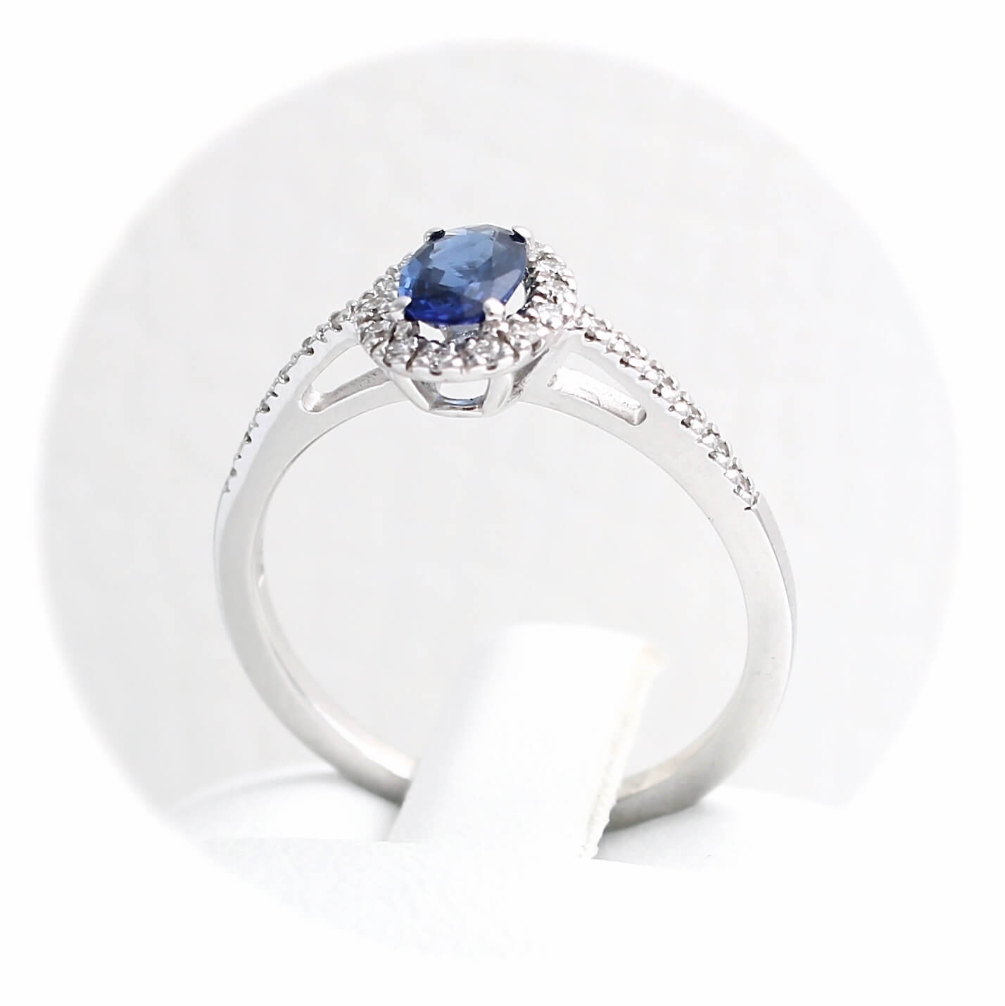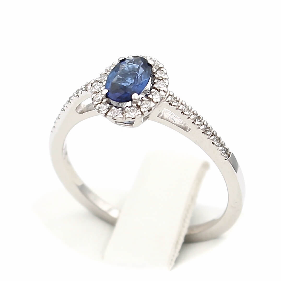 Μονόπετρο δαχτυλίδι λευκόχρυσο με ζαφείρι και διαμάντια - WDX144