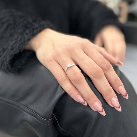 Λευκόχρυσο μονόπετρο δαχτυλίδι 18 καρατίων με διαμάντια
