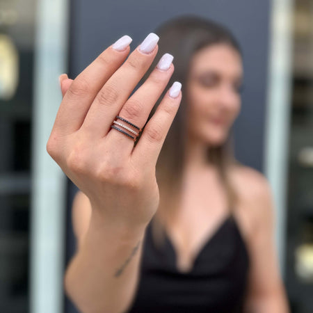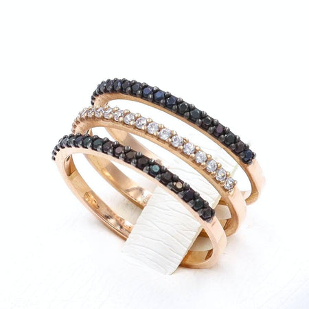 Ροζ χρυσό δαχτυλίδι 14 καρατίων σειρέ, με λευκά ζιργκόν