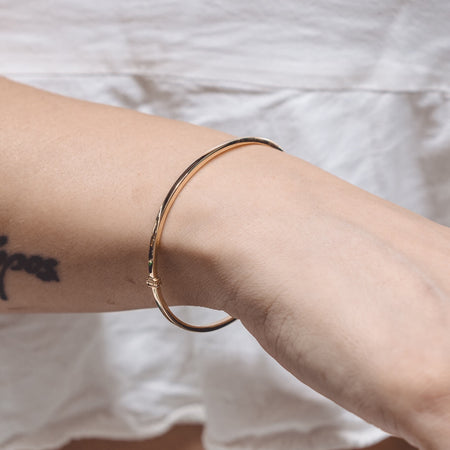 Χρυσό βραχιόλι χειροπέδα 14 καρατίων σε σχέδιο καρφί με μεντεσέ ατσαλίνας